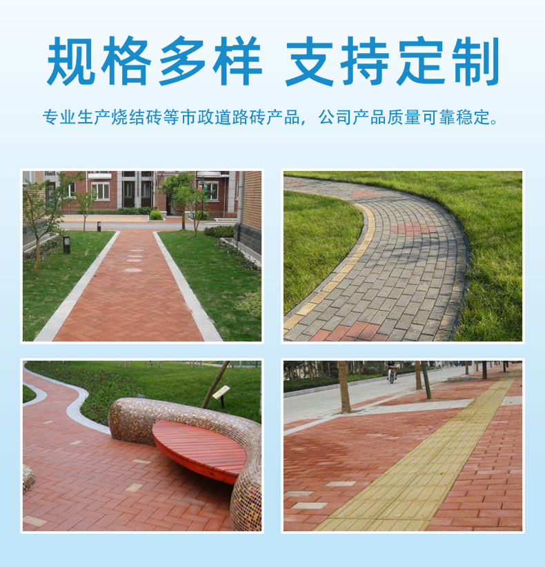 青島利盟新型建材有限公司是市政道路磚企業(yè),在青島開發(fā)區(qū)有混凝土磚合作工廠,專業(yè)生產(chǎn)高強度全聯(lián)鎖S型連鎖塊、透水磚、荷蘭磚、草坪磚、廣場磚等市政道路磚產(chǎn)品;在濱州有燒結磚合作工廠,專業(yè)生產(chǎn)燒結磚等市政道路磚產(chǎn)品;公司產(chǎn)品質量可靠穩(wěn)定,在青島市政工程中,具有一定的知名度。公司一直秉承“以質量求生存、以信譽求發(fā)展”的經(jīng)營理念,誠信經(jīng)營,開拓創(chuàng)新,企業(yè)不斷發(fā)展壯大,努力為廣大新老客戶提供優(yōu)質產(chǎn)品和服務,產(chǎn)品在青島市政工程中得到廣泛運用,得到相關建設單位和市政單位的認可,深受廣大客戶的喜愛和好評。我公司將繼續(xù)以“質量為本,誠信經(jīng)營,合作共贏”為宗旨,一如既往為廣大新老客戶提供質量可靠的產(chǎn)品、完善的售后服務,歡迎客戶朋友來廠參觀洽談,我們將真誠讓用戶滿意,互利互惠,攜手共進!